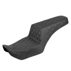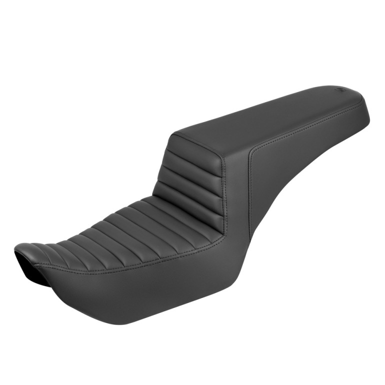 真のパフォーマンスを誇るライディングシートです。ステップアップデザインがシートをしっかりと固定し、アグレッシブなライディングをさらに快適にします。また、内部のジェルコアが一日中続くライディングでも快適な座り心地を実現します。タック&ロールの張り地はホットロッドの世界を彷彿とさせます。
